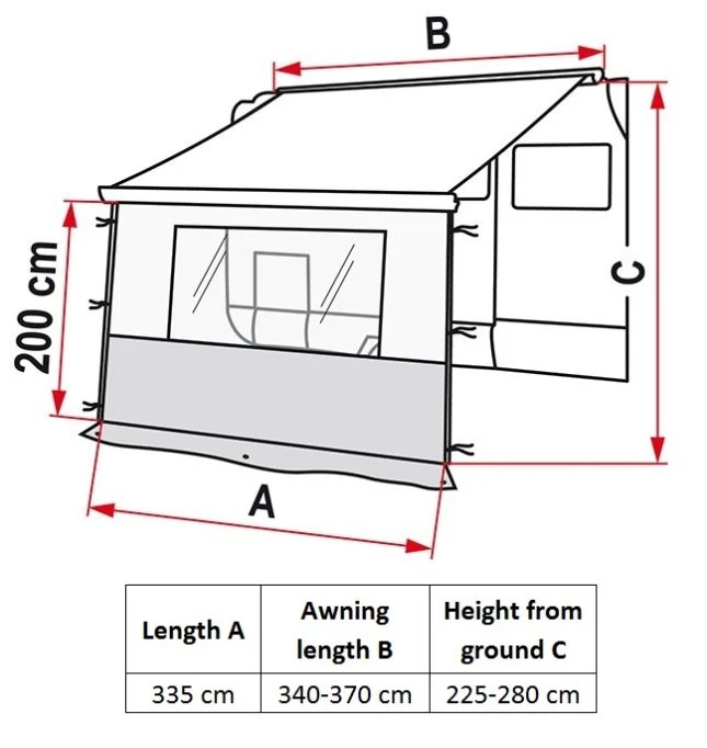 It is suitable for the F45 (3.50m width), the F80 (3.70m) and Caravanstore (3.60m).