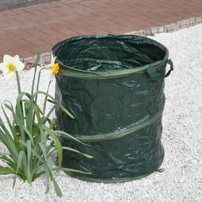 Heavy-duty Kingfisher pop-up garden refuse bag. Complete with carry handles. Size when open H48 x DIA44cm. 73L capacity. Collapsible for easy storage.
