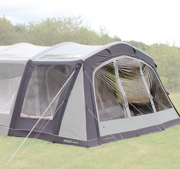 Introducing a coordinated Outdoor Revolution Kalahari Porch Extension which is designed to zip onto the front of the seven-berth Kalahari PC 7.0 family tent, to considerably extend usable utility space from the integral front vestibule, using a sealable canopy extension for alfresco cooking or relaxation, featuring an excellent vista of the outside world through an enclosed windowed multi-position front door panel and complete protection against the elements, ensuring maximum enjoyment throughout wet weather.