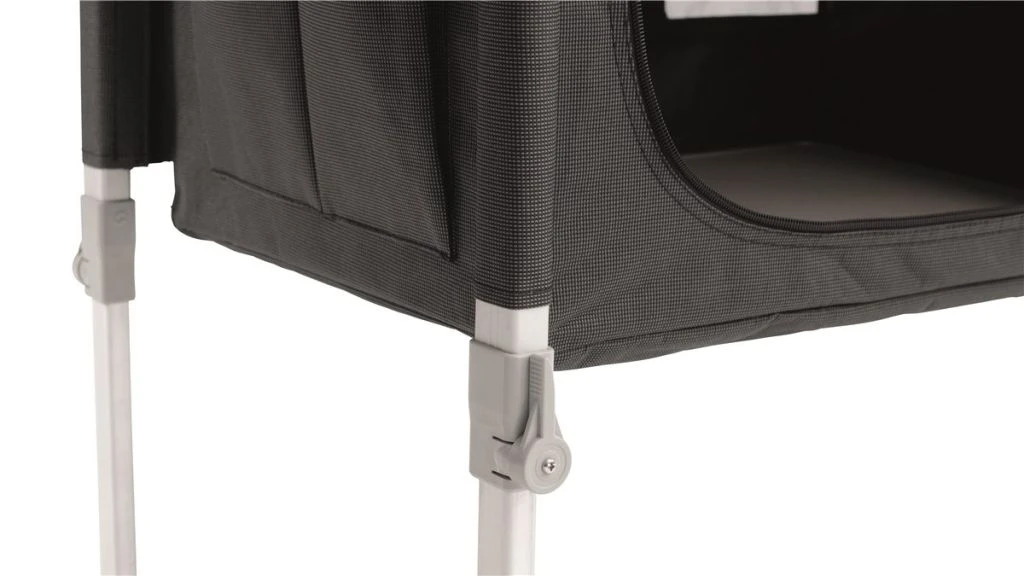 - Two-shelf cupboard with zipped door and mesh ventilation