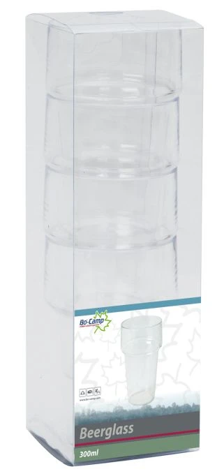 A set of 4 beer glasses. Each glass has a collar design and are also suitable for stacking.