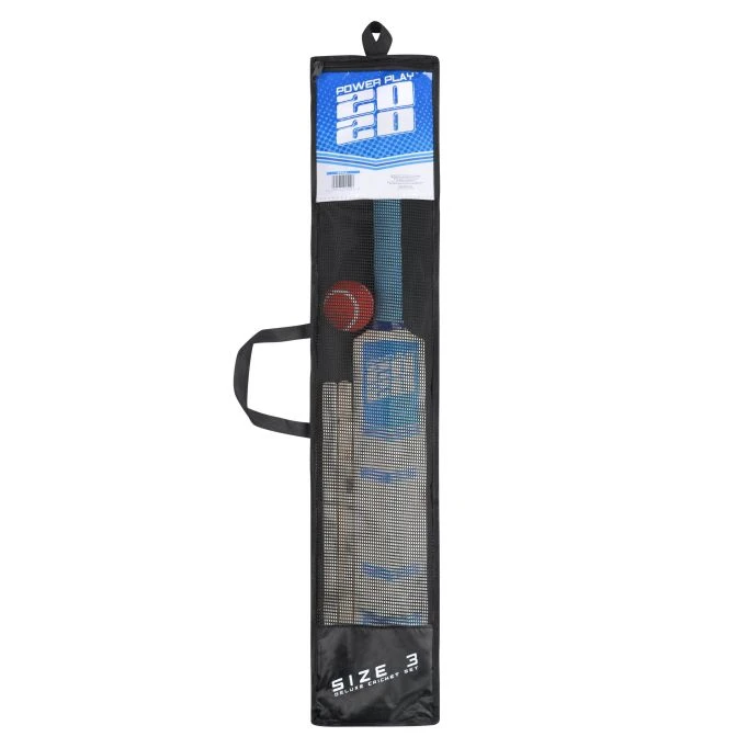 The Powerplay Cricket Set is ideal for beginners. Fun for all the family. Includes lightweight quality wooden bat, stumps, bails and soft red ball.
